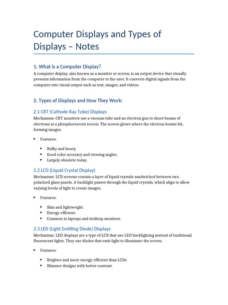 Computer Display Types and Mechanisms Notes | PDF | Computer Monitor ...