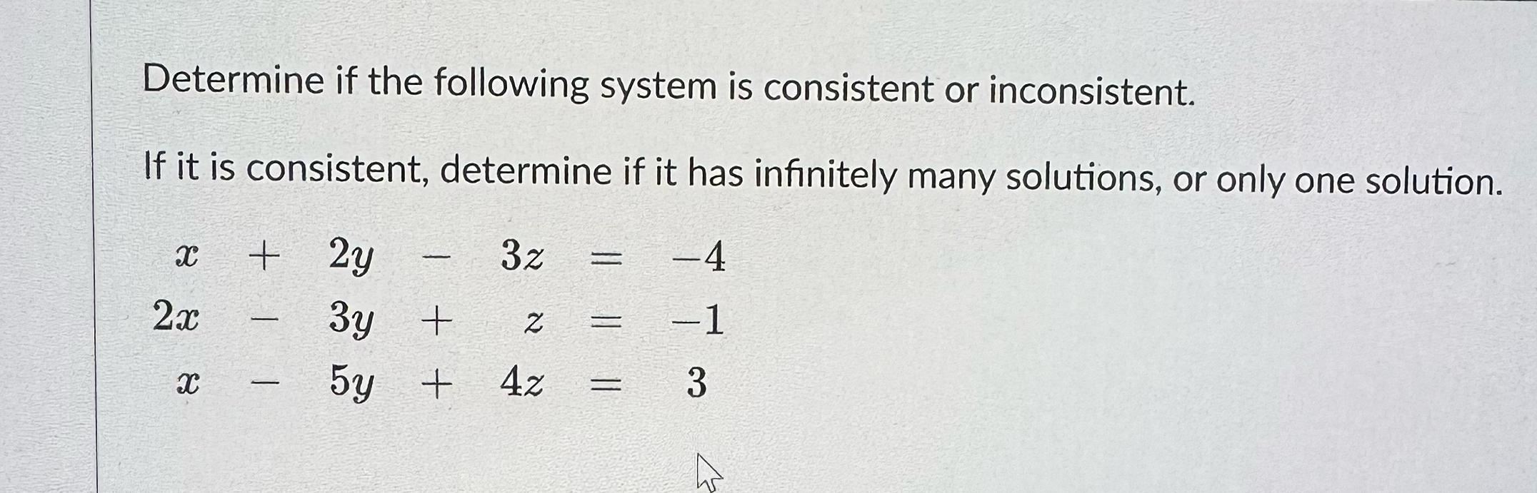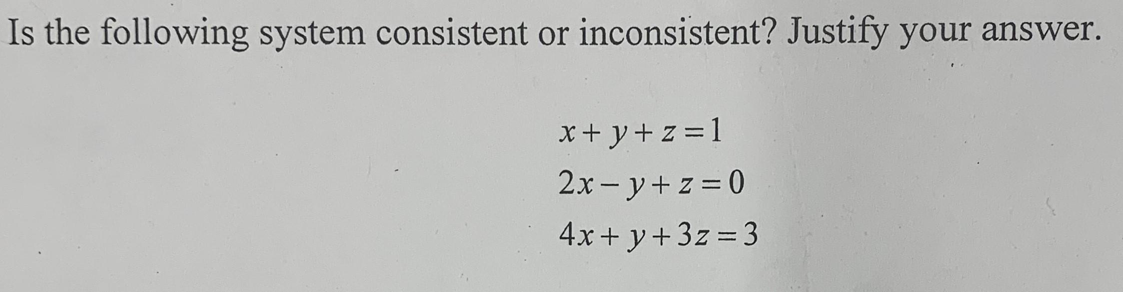 Solved Is the following system consistent or inconsistent? | Chegg.com