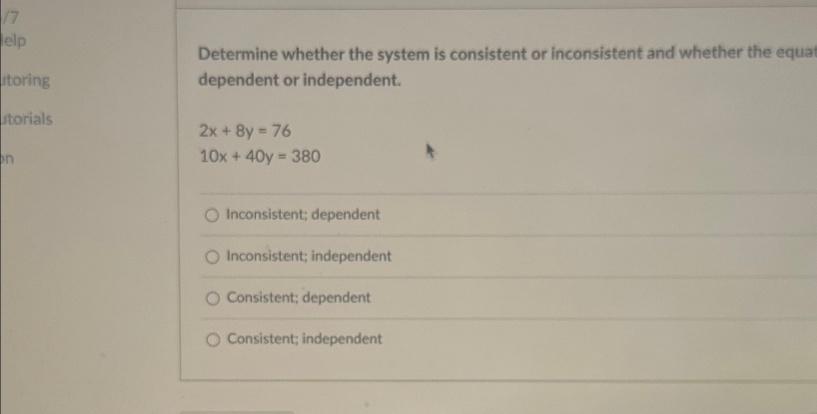 the system shown is consistent, inconsistent, equivalent - brainly.com