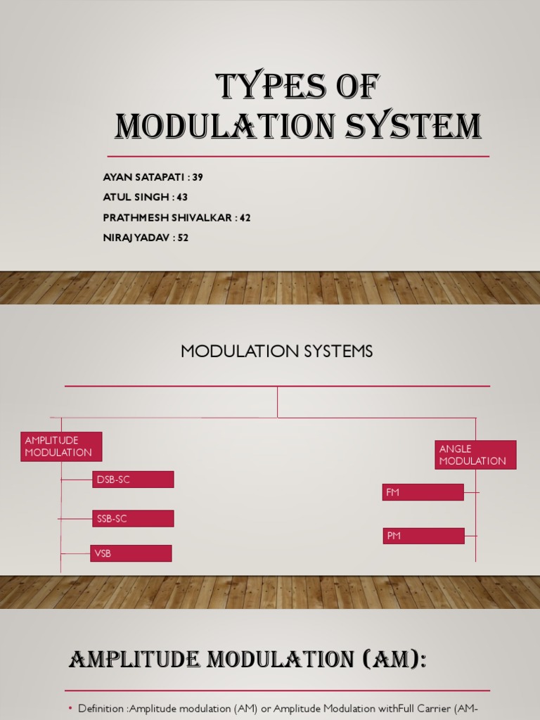 Types of Modulation System: Ayan Satapati: 39 Atul Singh: 43 Prathmesh ...