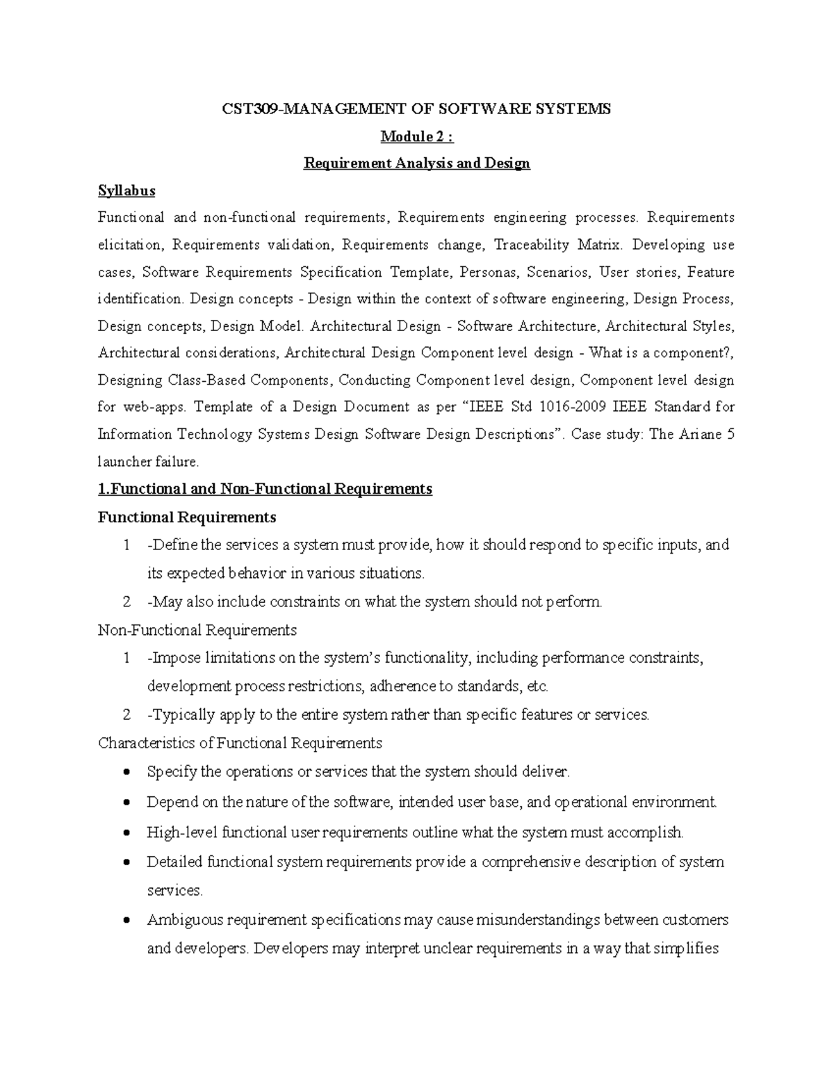 Module 2: Software Systems Requirement Analysis & Design Notes - Studocu