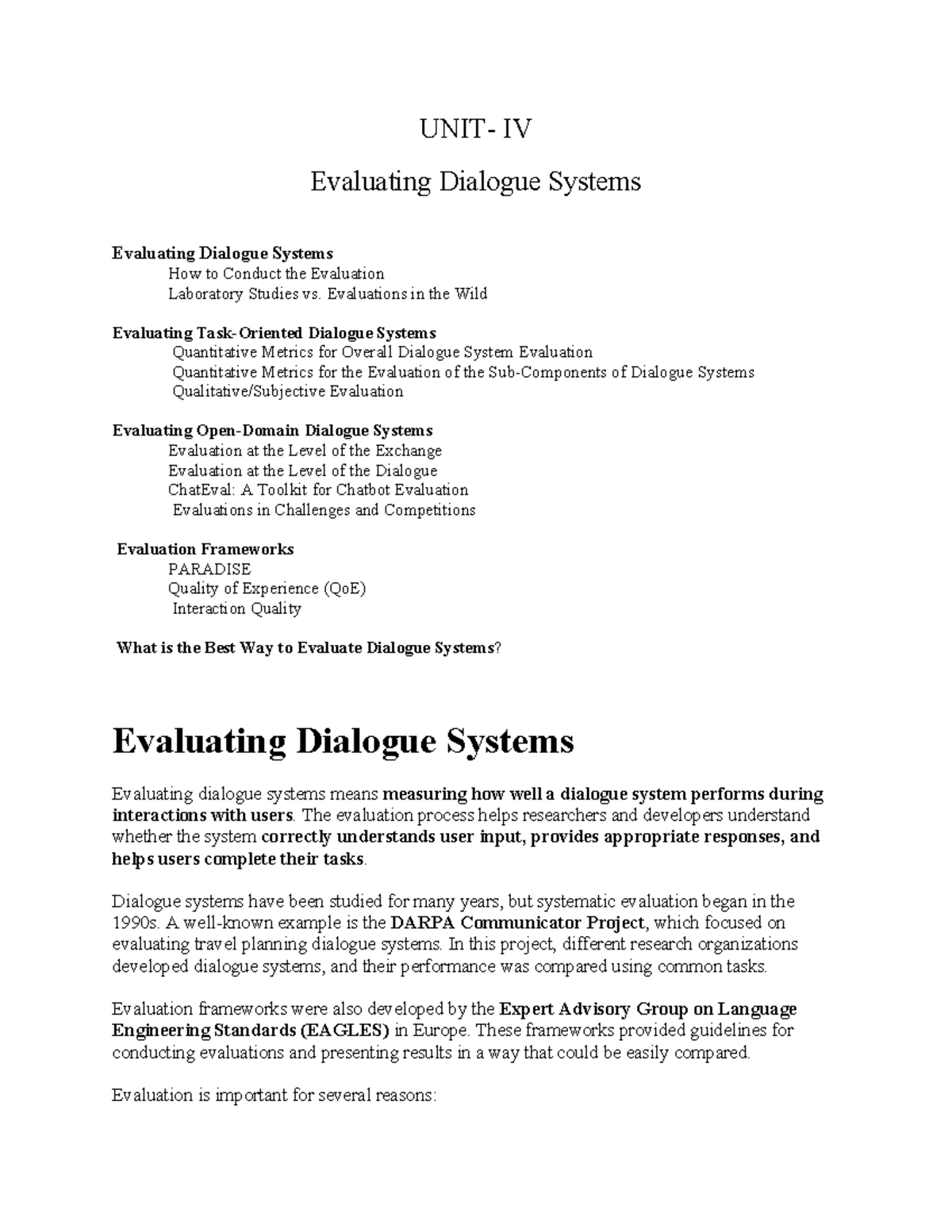 IV Evaluating Dialogue Systems: Methods and Metrics for Assessment ...
