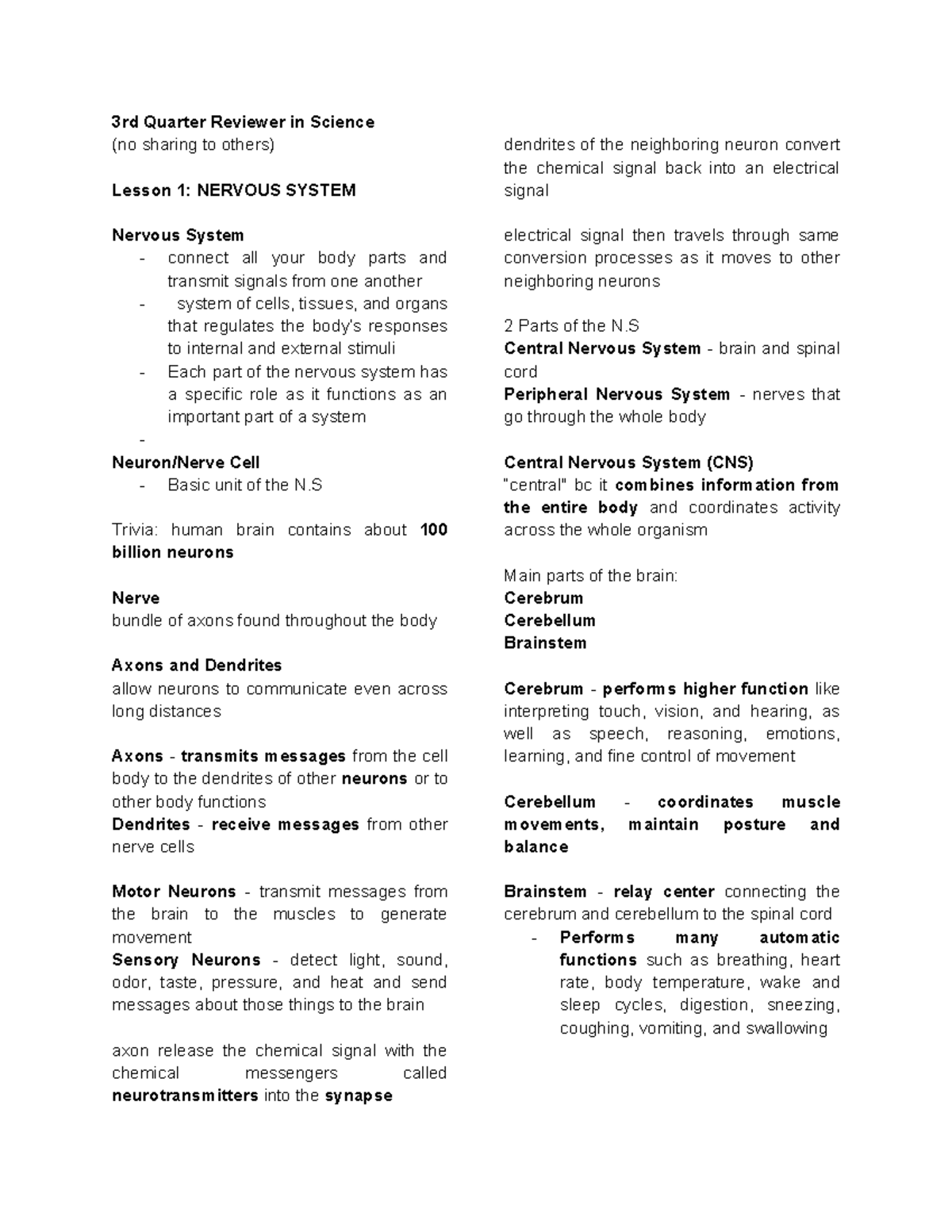 3rd Quarter Science Reviewer: Nervous, Endocrine & Reproductive Systems ...