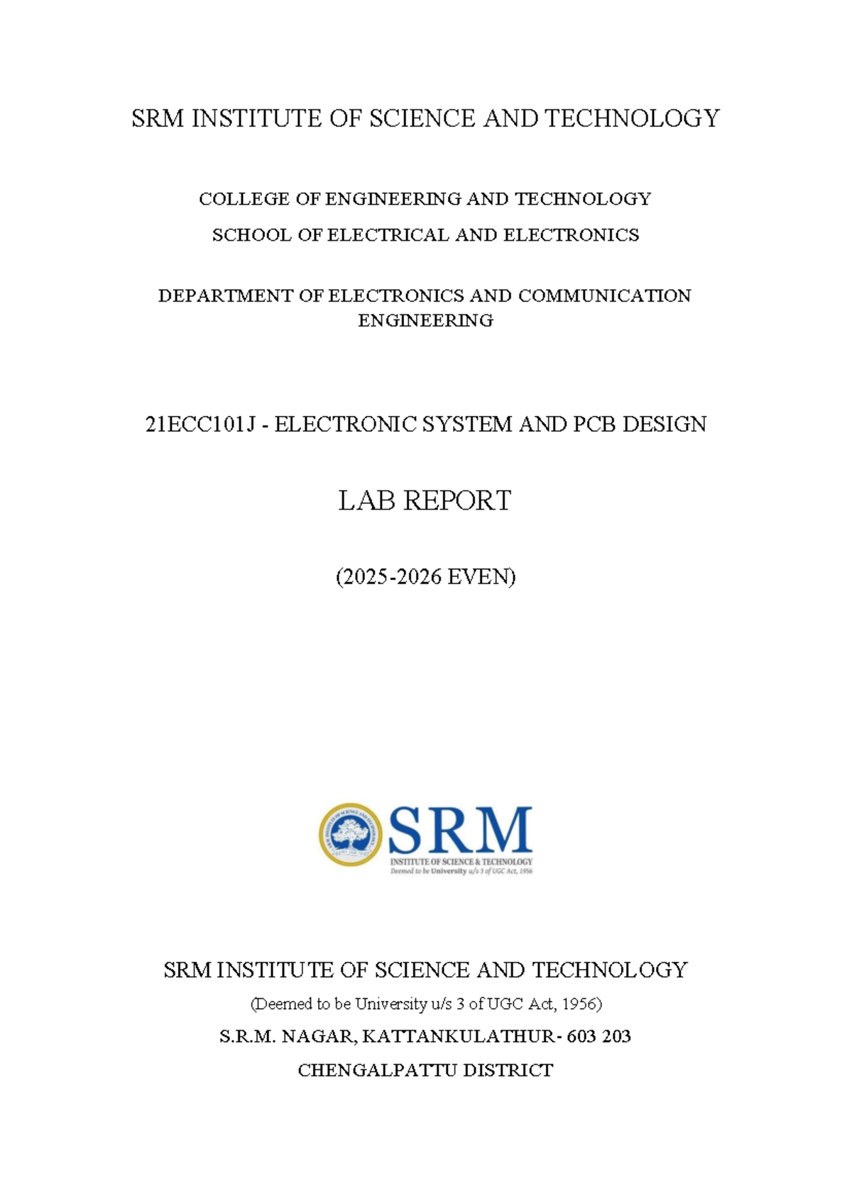 21ECC101J Electronic System & PCB Design Lab Report (Even) - Studocu
