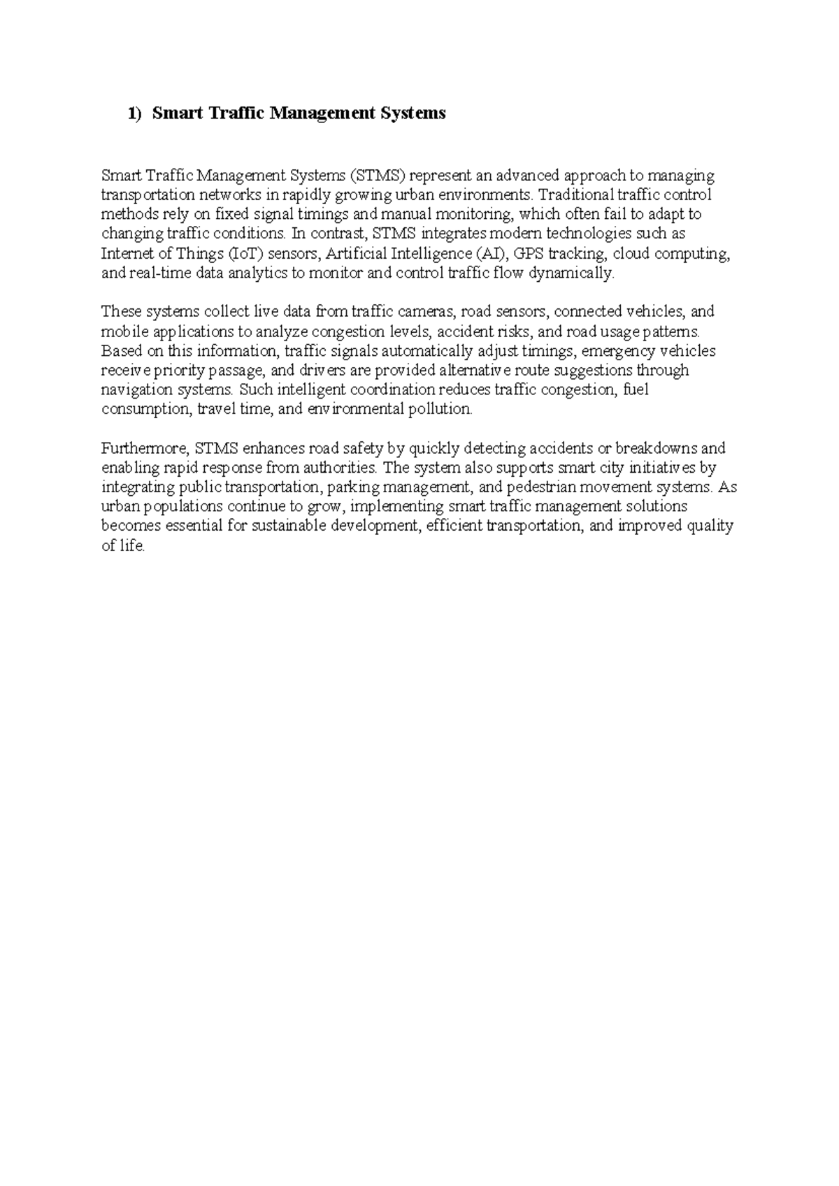Smart Traffic Management Systems (STMS) Overview and Benefits - Studocu
