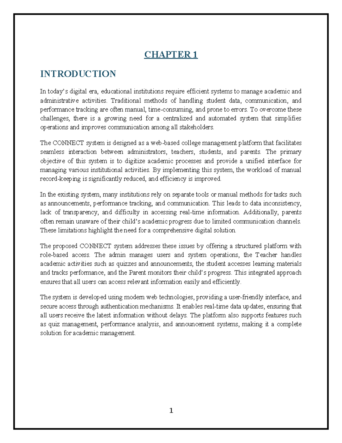CONNECT College Management System: Chapter 1 Overview and Objectives ...