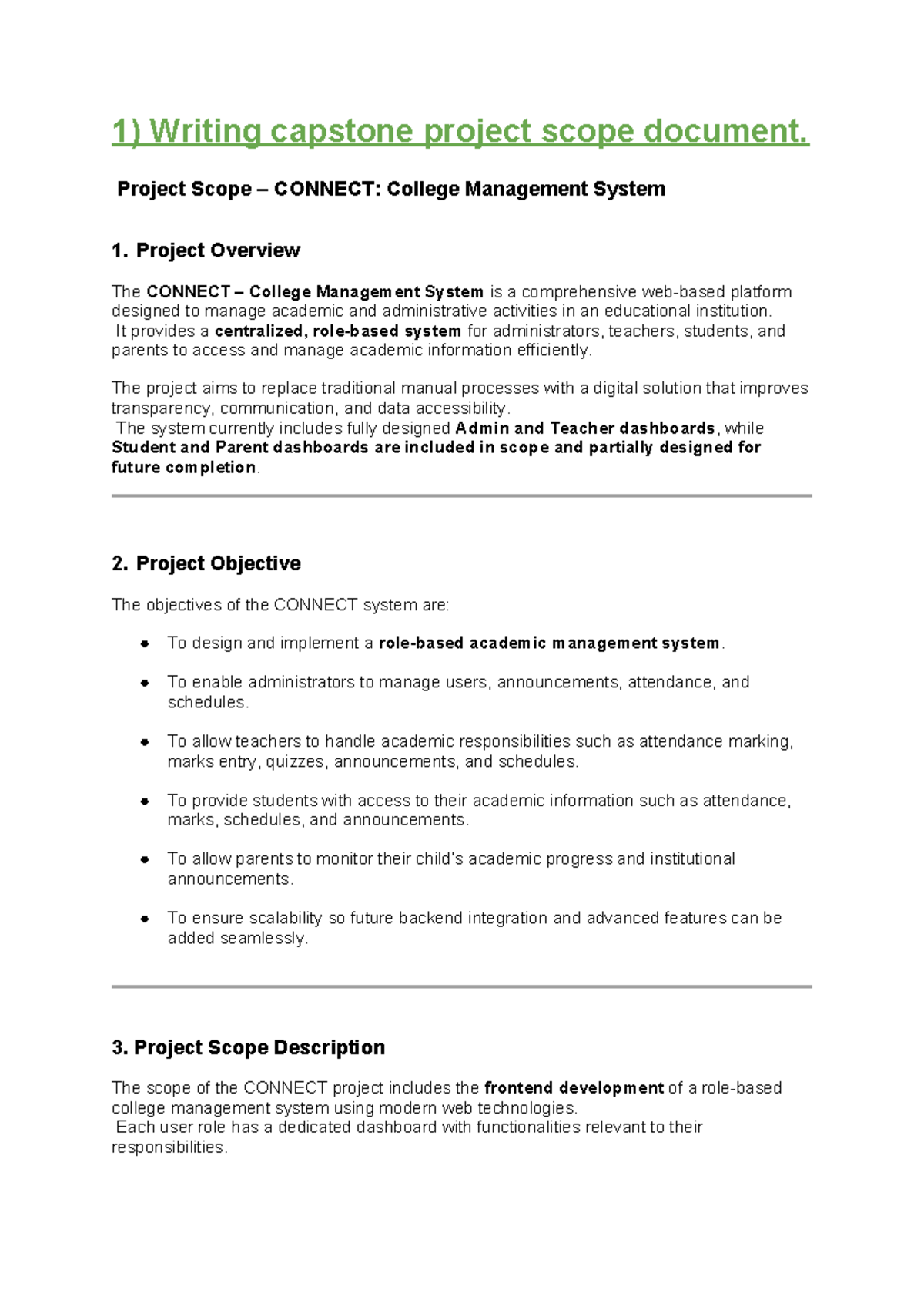 Capstone Project Scope Document: CONNECT College Management System ...