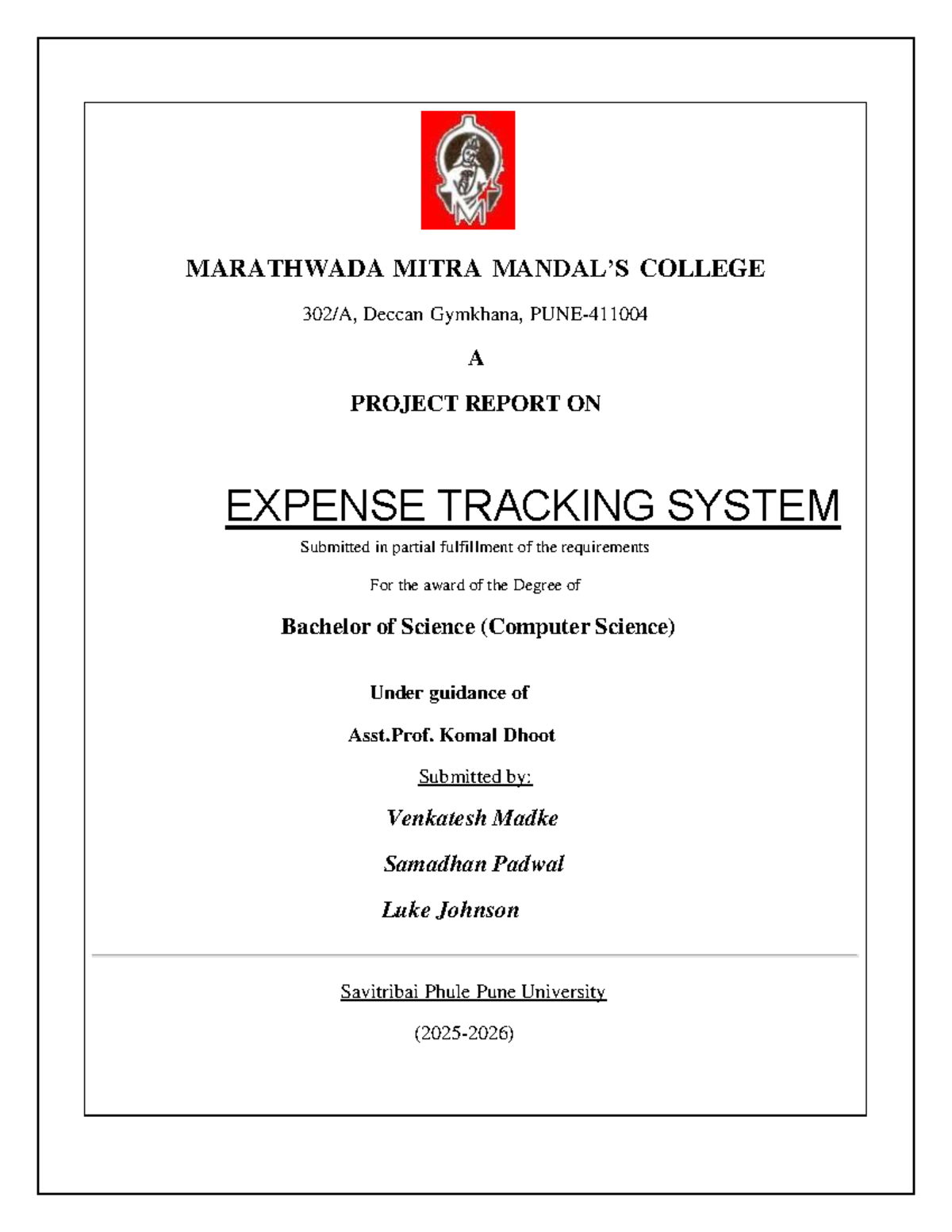 Expense Tracking System Project Report - B.Sc. (CS) - Studocu