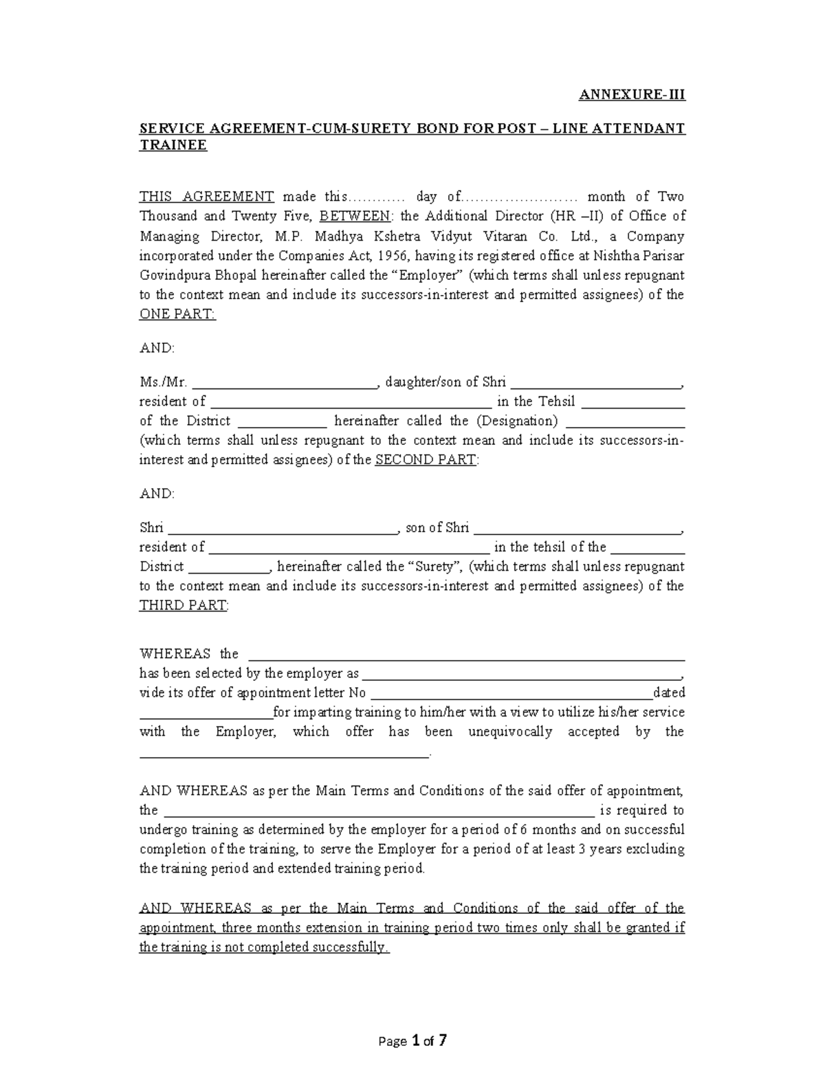 Annexure 3: Service Agreement-Cum-Surety Bond for Class IV Line ...