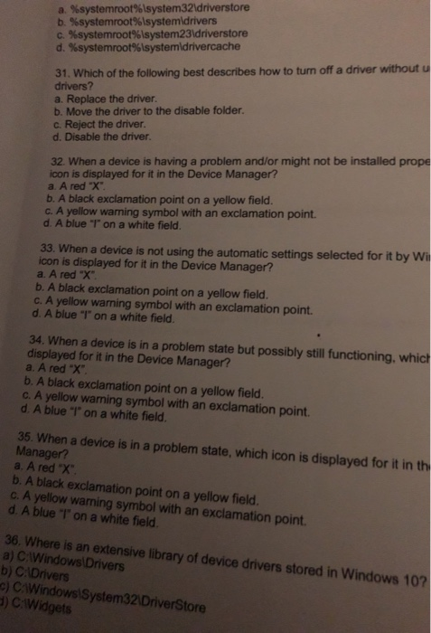 Solved a. %systemroot%\system32\driverstore b. | Chegg.com