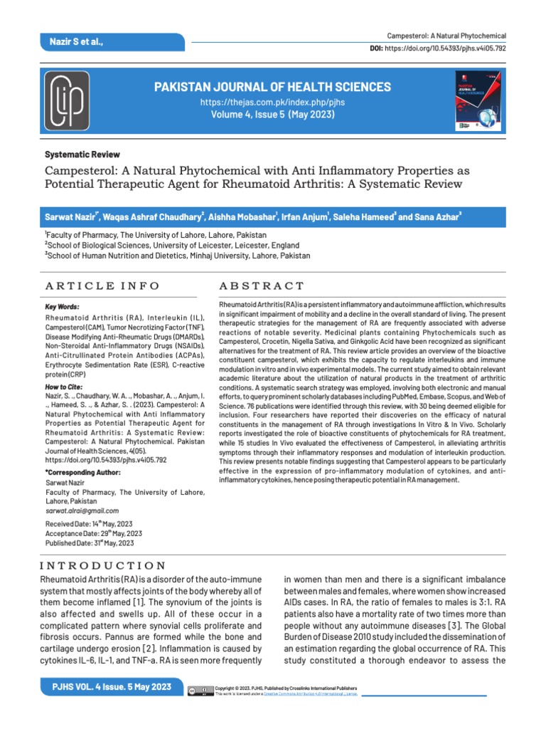 (Systematic 01) Campesterol A Natural Phytochemical With Anti ...