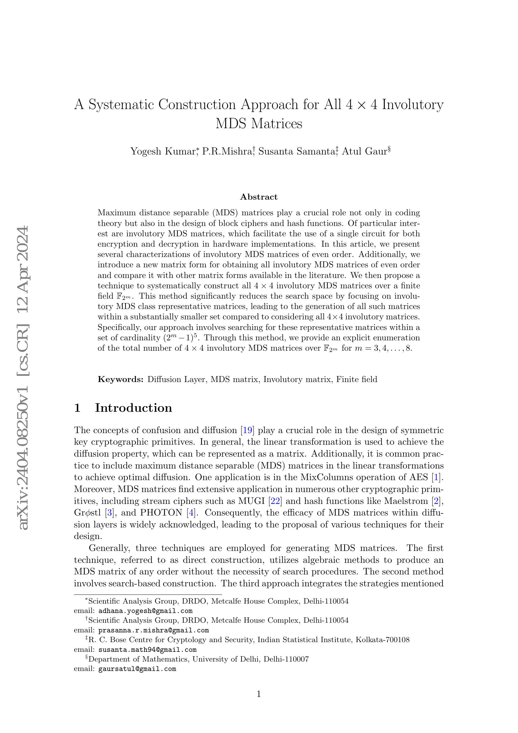 A Systematic Construction Approach for All $4\times 4$ Involutory MDS ...