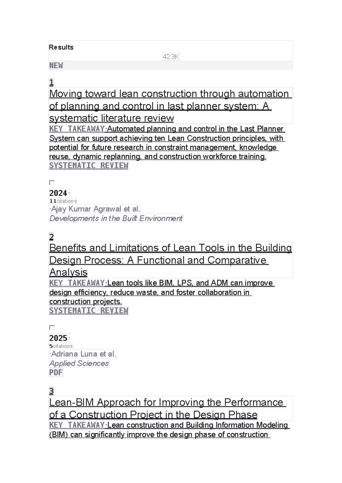 Results NEW 423K 1: Systematic Review on Lean Construction & Automation ...