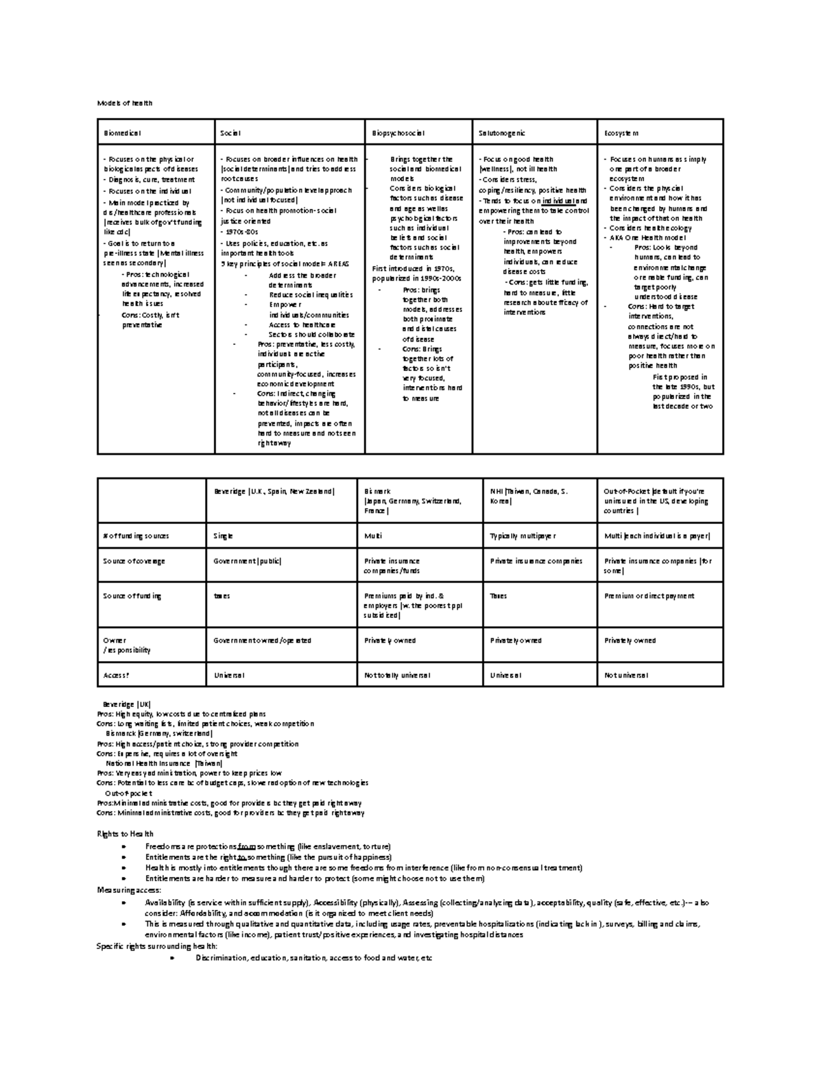 Midterm Cheat Sheet: Health Models & Systems Overview - Studocu