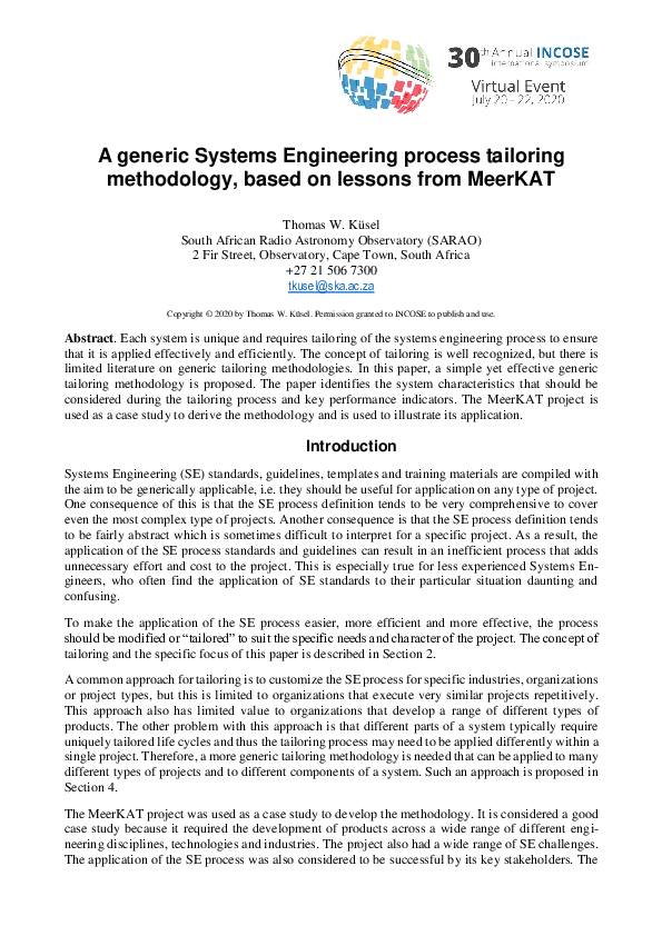 (PDF) A generic Systems Engineering process tailoring methodology ...