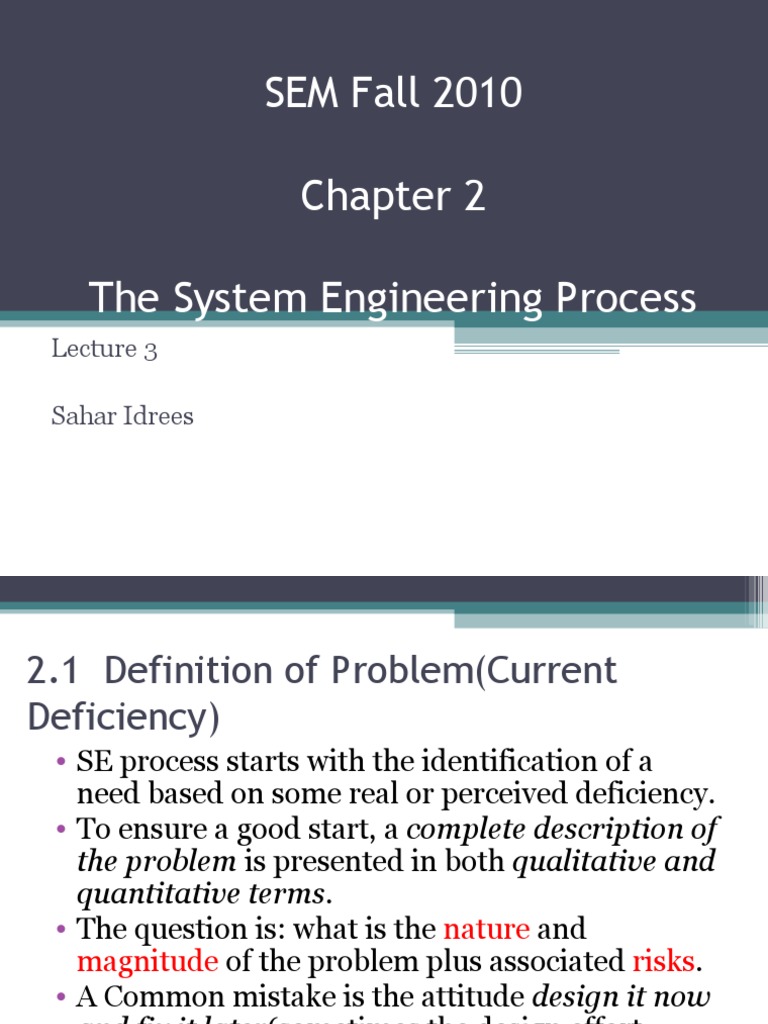 SEM Fall 2010 The System Engineering Process: Sahar Idrees | Download ...