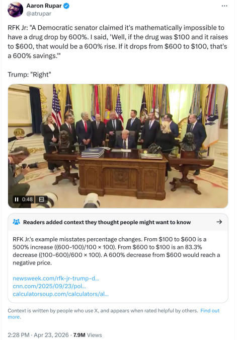 RFK Jr.’s math lesson slapped down by community note