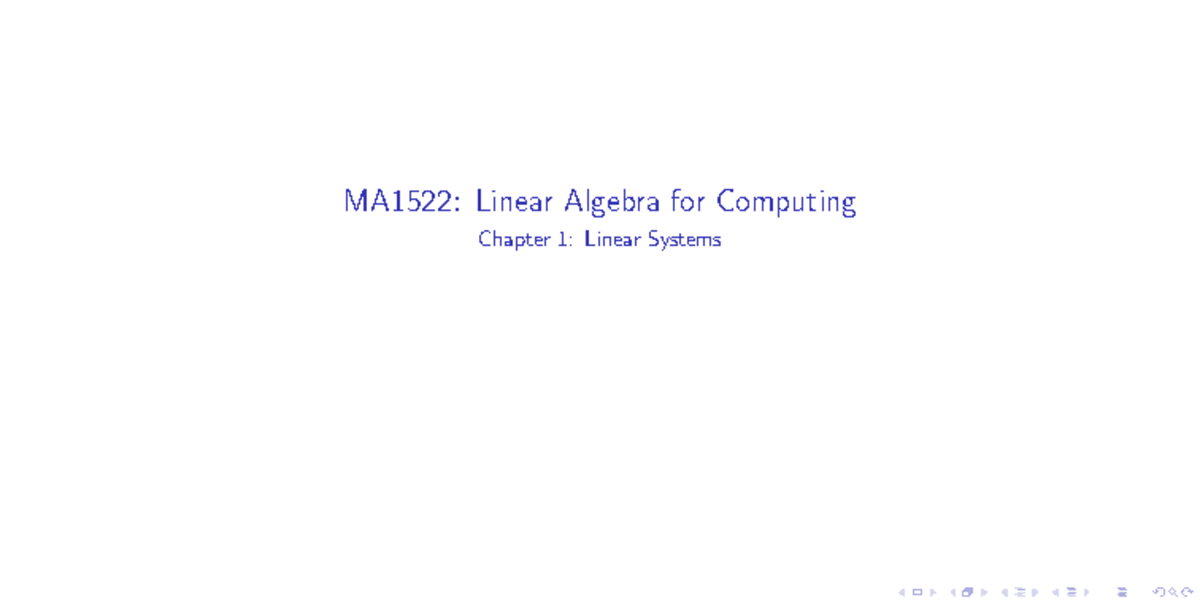 MA1522: Linear Algebra for Computing - Chapter 1: Linear Systems - Studocu