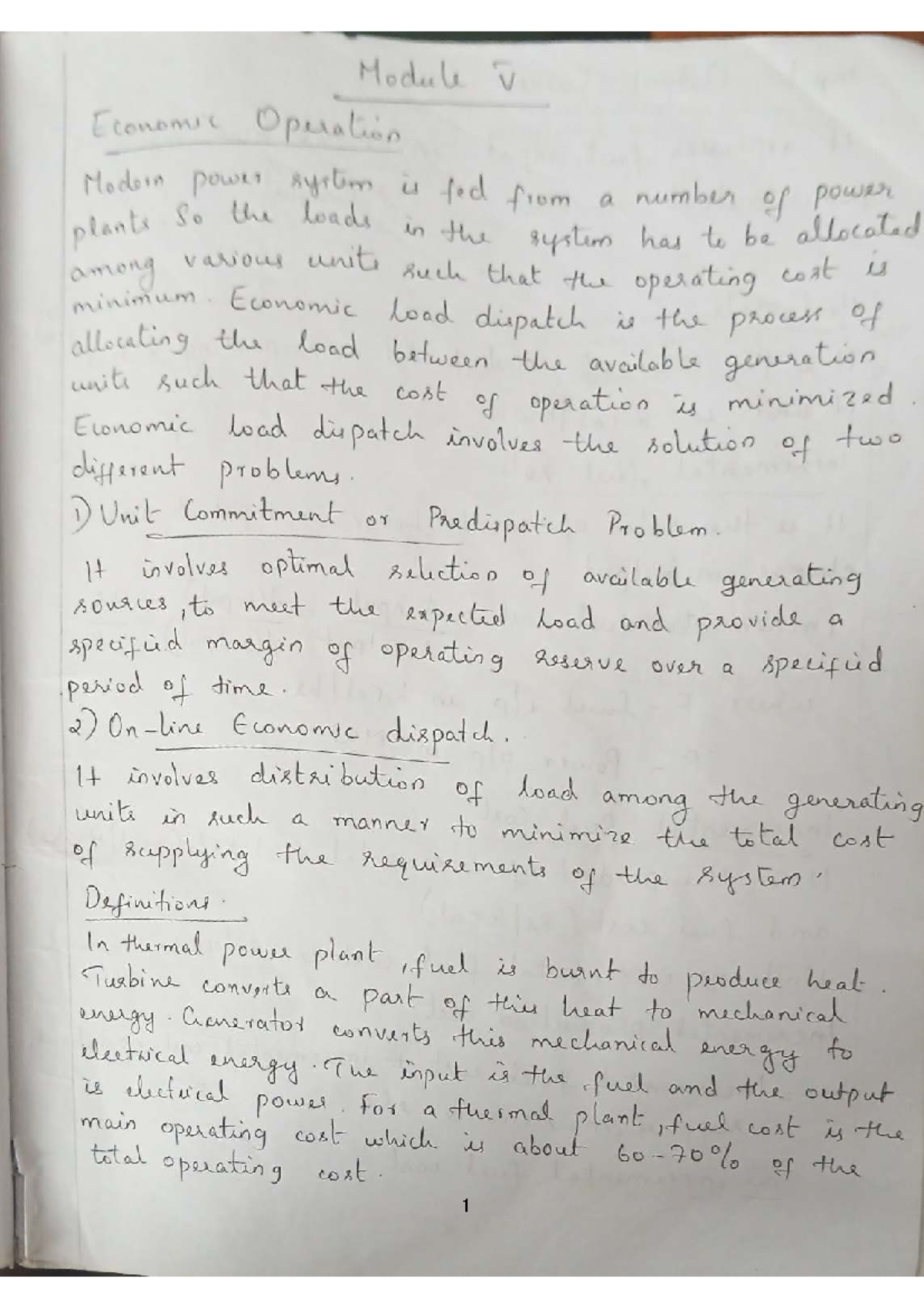 Power System Module 5 Notes: Economic Load Dispatch Analysis - Studocu
