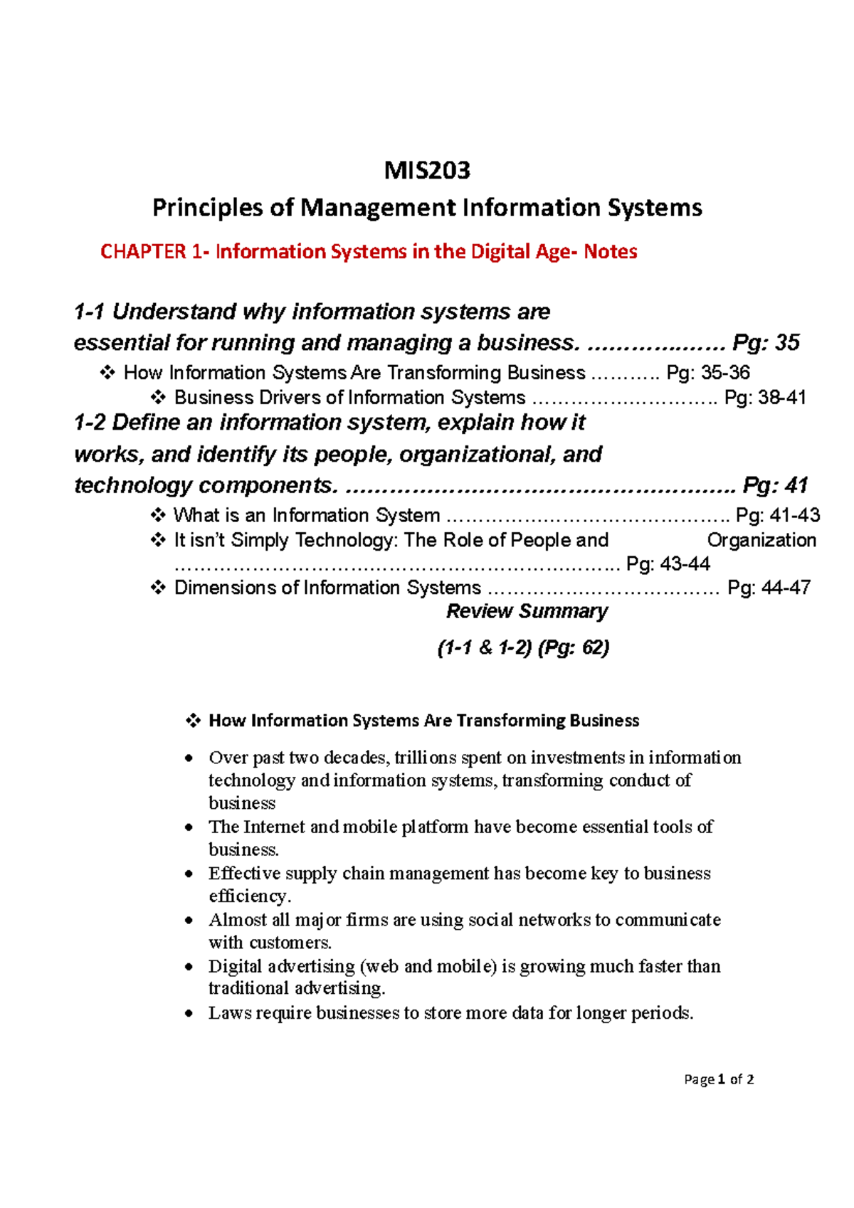 MIS203 Chapter 1: Information Systems in the Digital Age - Notes - Studocu