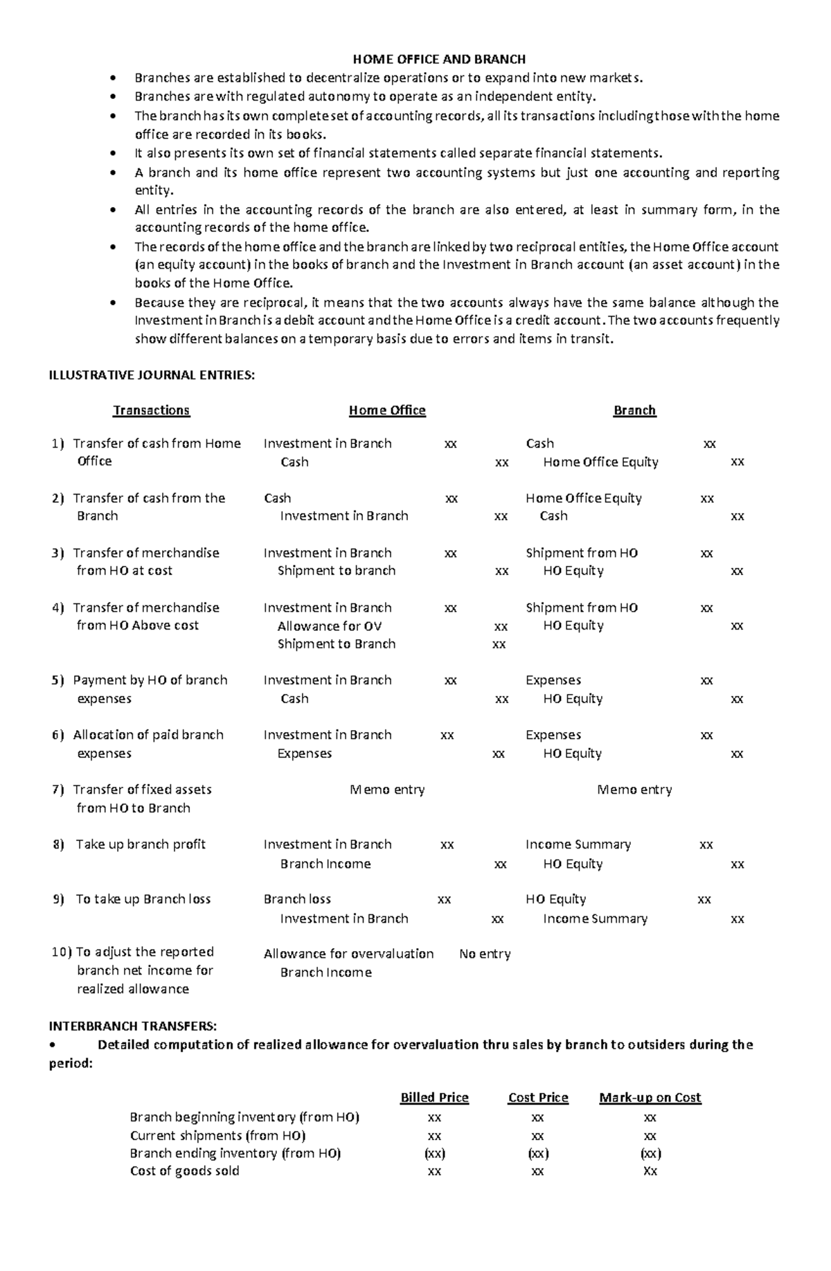 HOME OFFICE AND BRANCH - Lecture Notes on Accounting Systems - Studocu