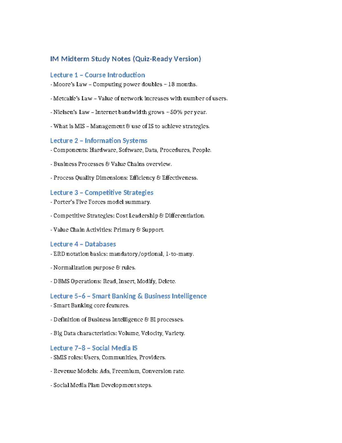 IM Midterm Study Notes: Key Concepts in Information Systems - Studocu