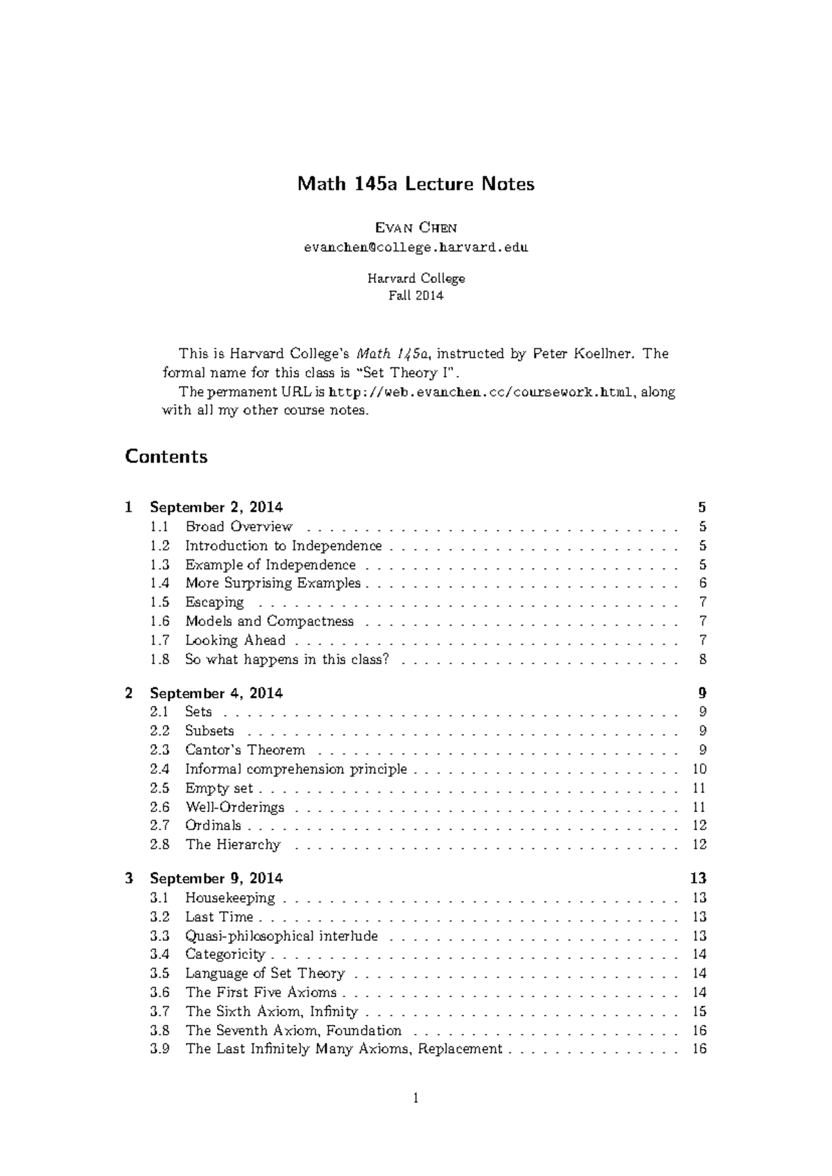 Math 145a Lecture Notes: Set Theory Overview by Evan Chen (Fall 2014 ...