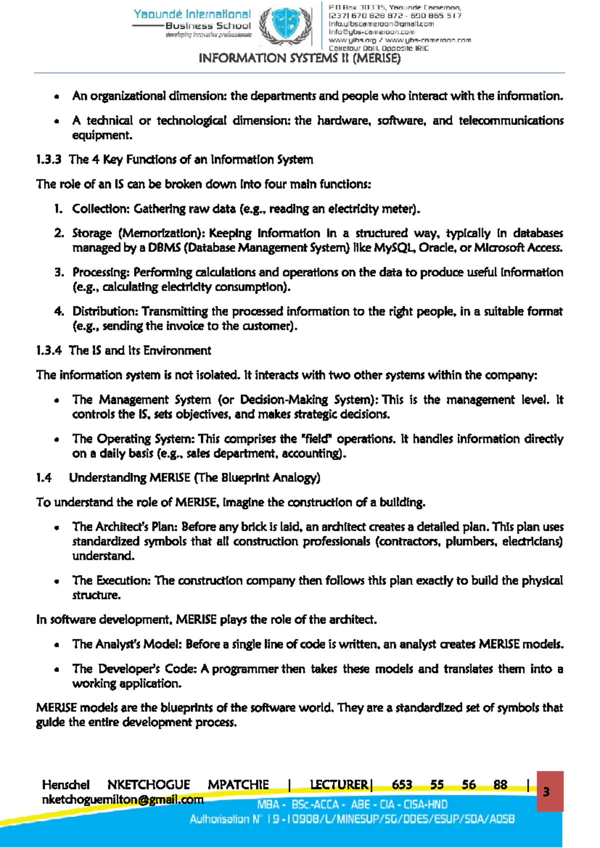 HND IS II Lecture Notes: Understanding Information Systems and MERISE ...