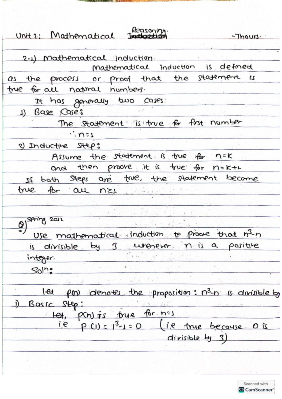 Unit 2 - Comprehensive Notes on Mathematical Induction (MATH 1S) - Studocu