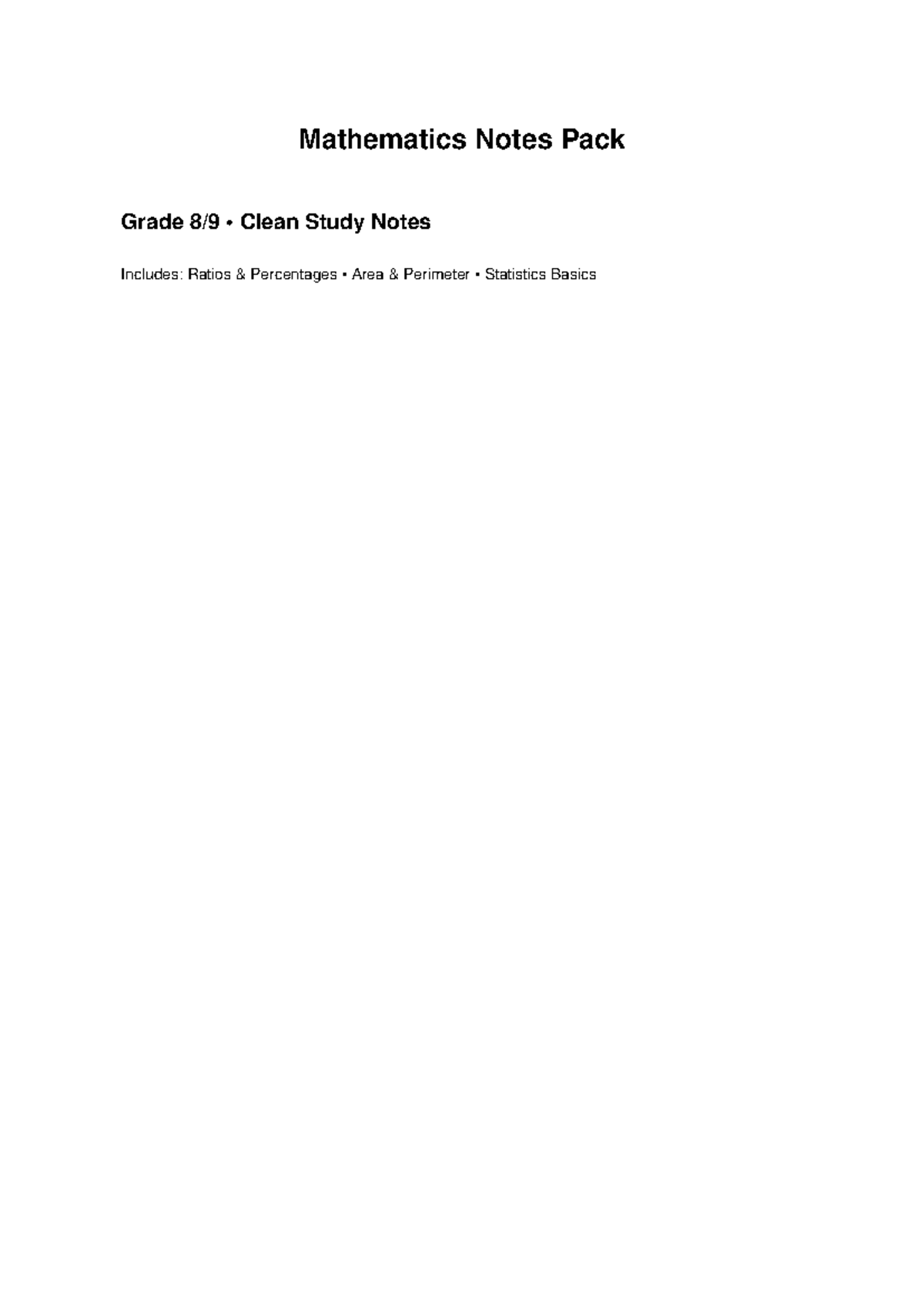Mathematics Study Notes Pack: Ratios, Percentages & Statistics - Studocu