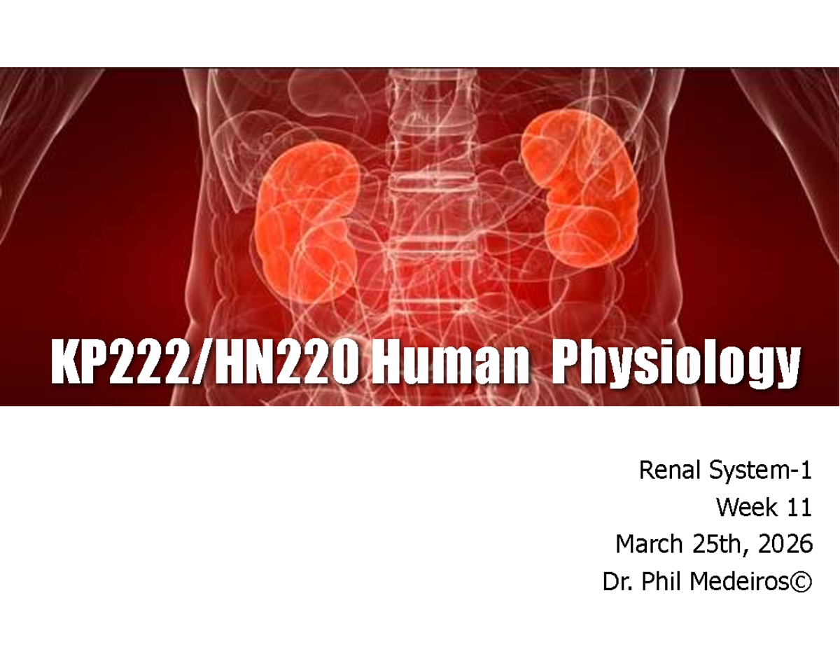 KP222/HN220 Renal System Lecture Notes - Studocu