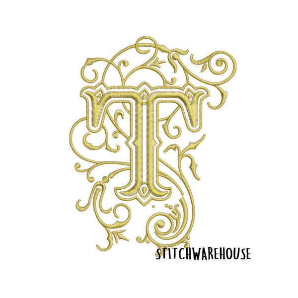 Split Monogram T Embroidery Design Font with Swirl Motif | Etsy