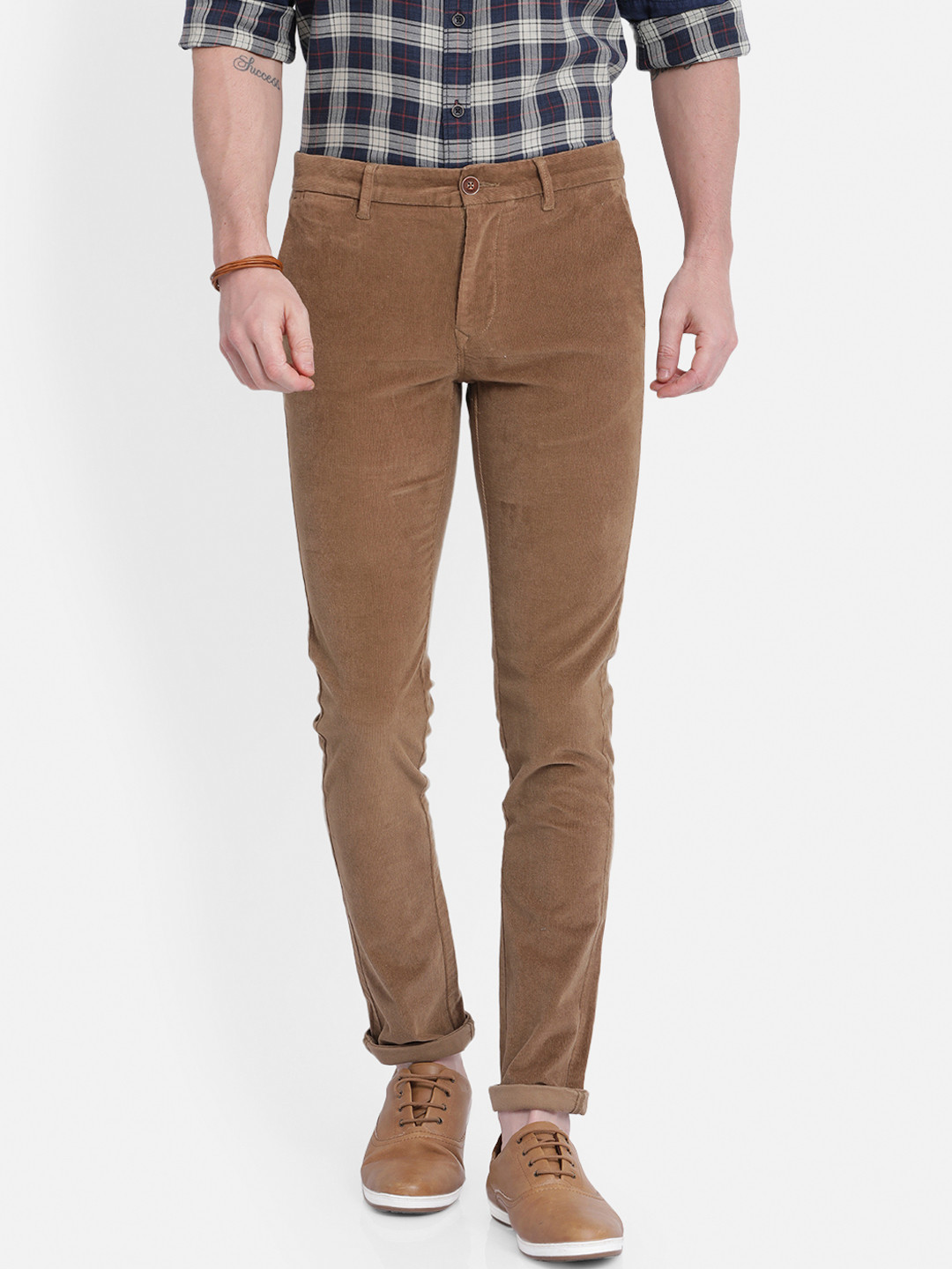 Buy T Base Men Brown Slim Fit Self Design Regular Trousers - Trousers ...