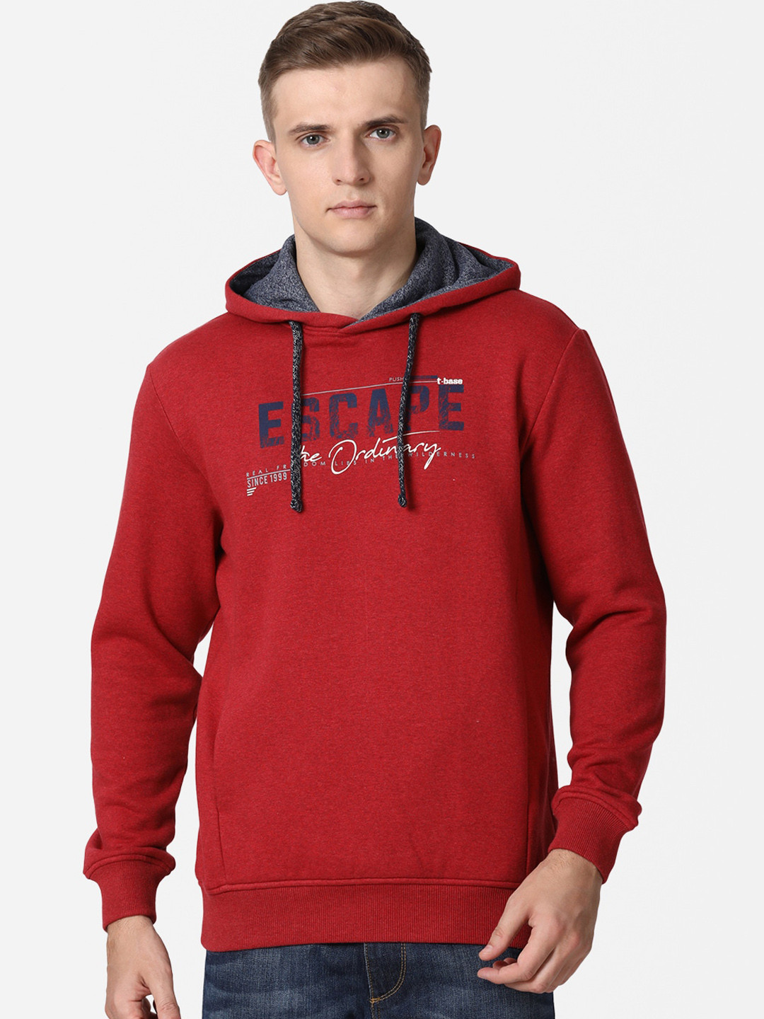 Buy T Base Men Red Typography Printed Cotton Hooded Pullover Sweatshirt ...