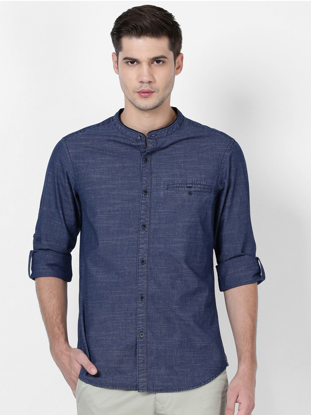 Buy T Base Men Navy Blue Solid Standard Casual Shirt - Shirts for Men ...