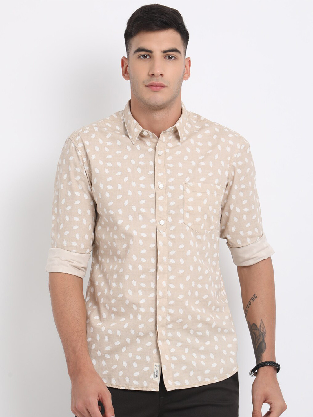 Buy T Base Men Beige Standard Printed Pure Cotton Casual Shirt - Shirts ...
