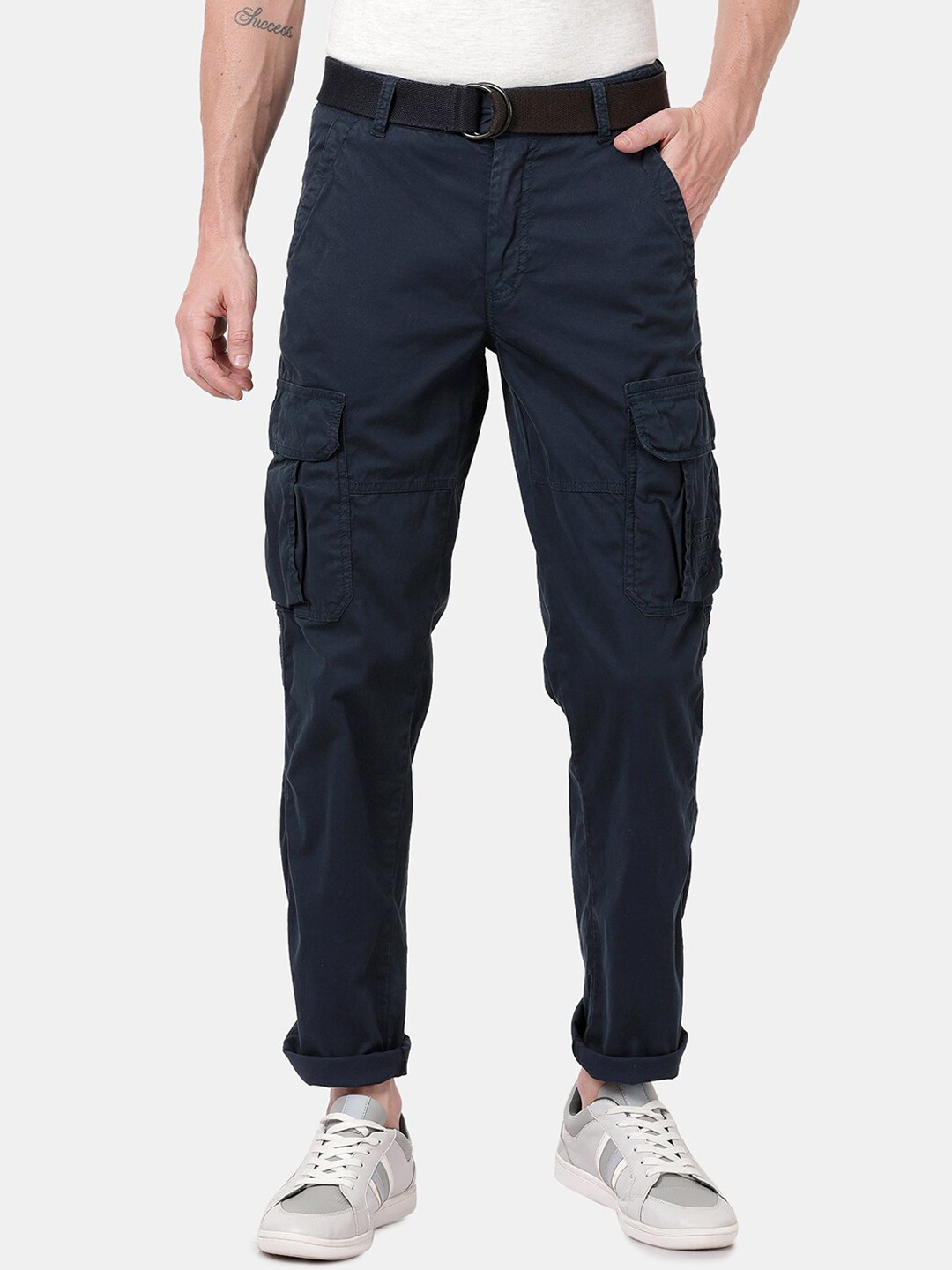 Buy T Base Men Navy Blue Easy Wash Cargos Trousers - Trousers for Men ...