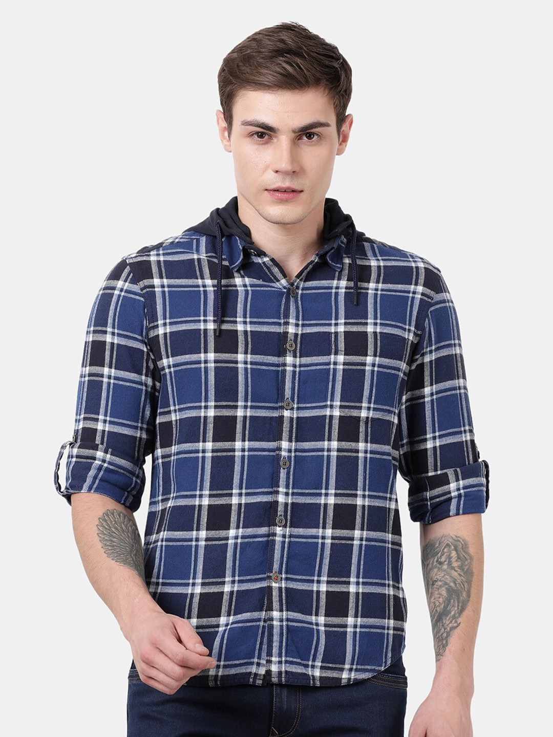 Buy T Base Men Blue Standard Tartan Checks Checked Casual Shirt ...
