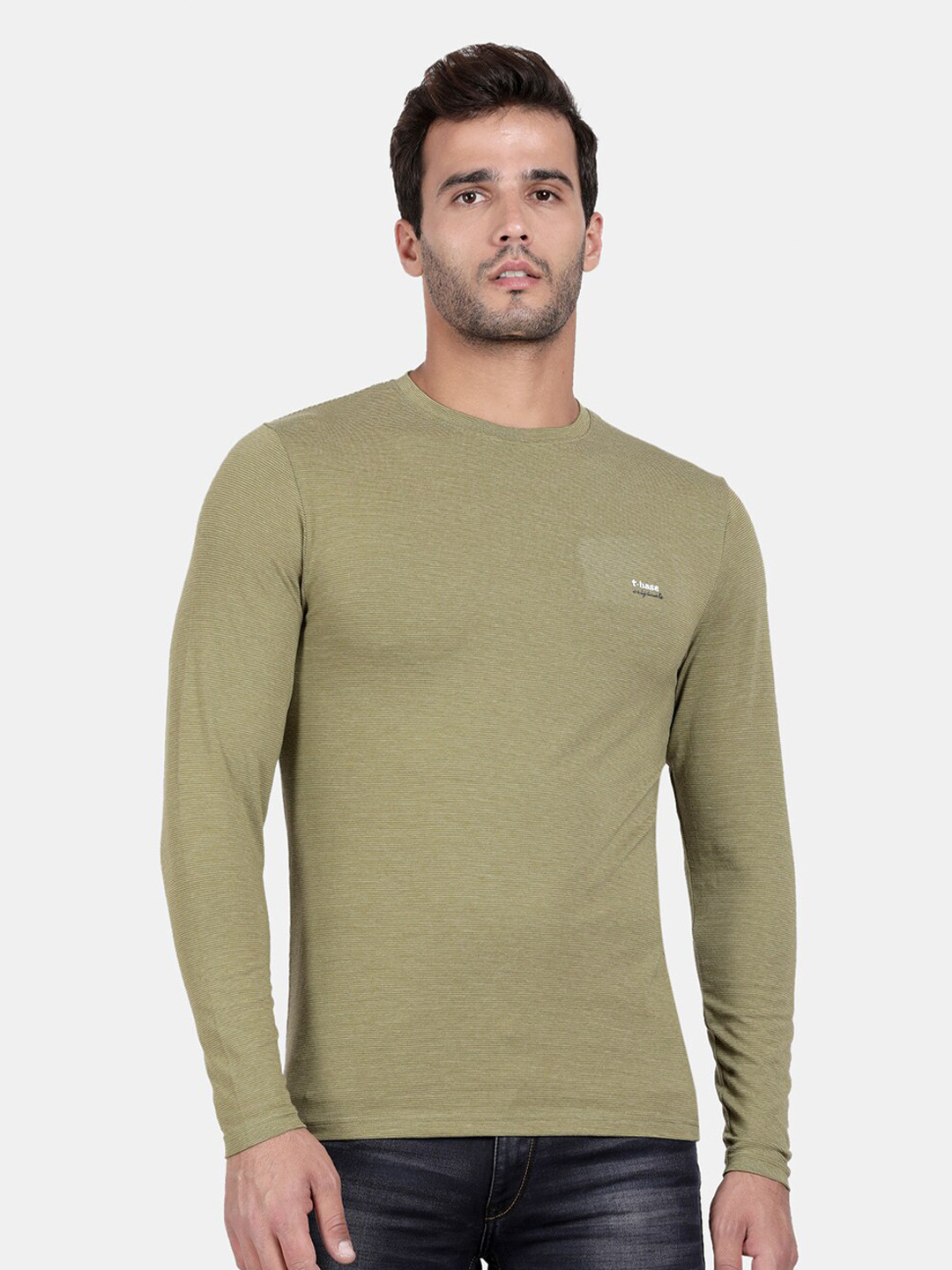 Buy T Base Men Olive Green Solid Slim Fit Cotton T Shirt - Tshirts for ...