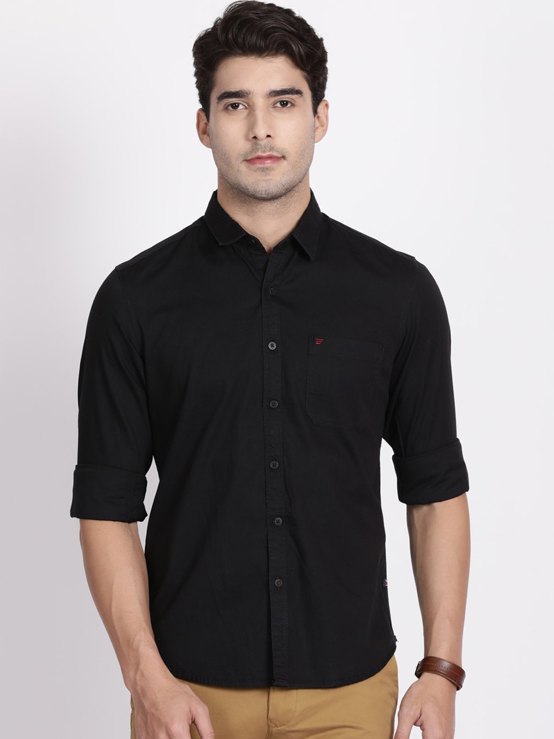 Buy T Base Men Black Slim Fit Solid Casual Shirt - Shirts for Men ...