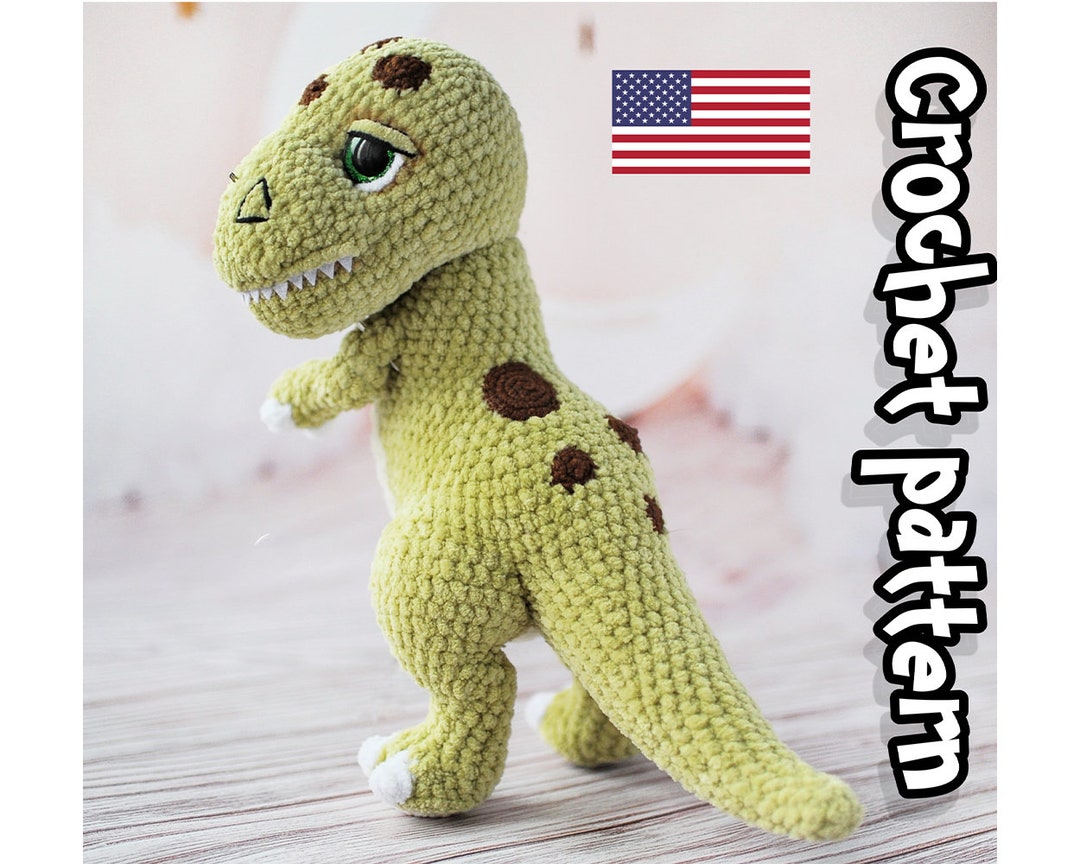 T-rex Crochet Pattern - Travis the T-rex Pattern - PDF in US and UK ...