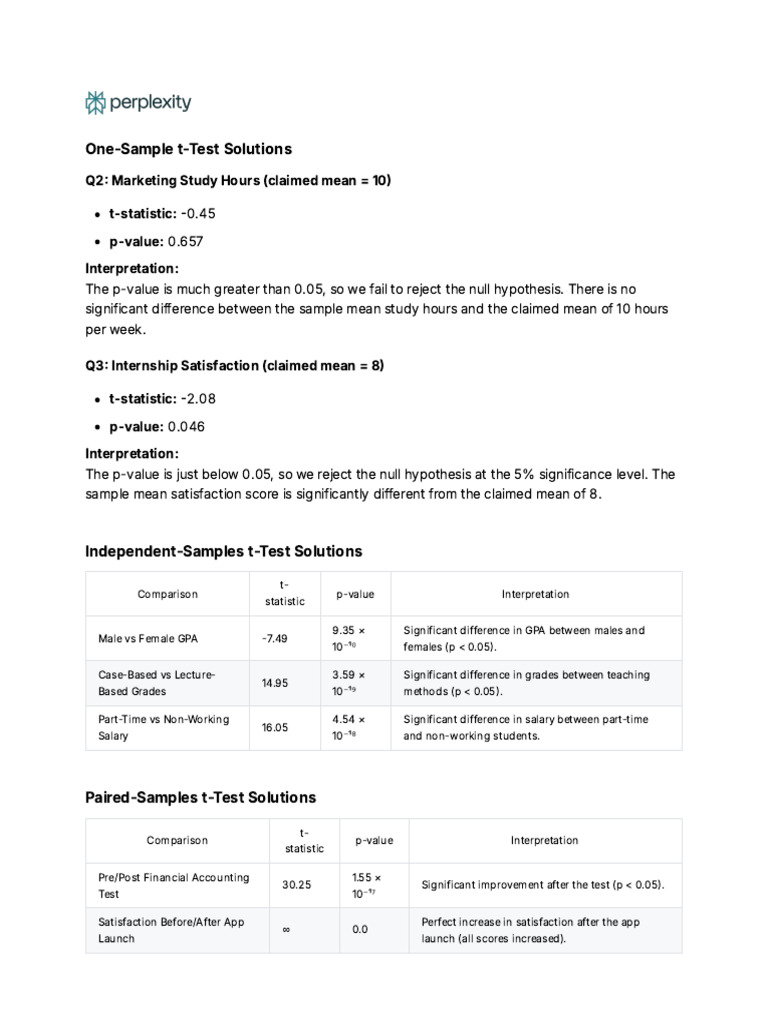One Sample T Test Solutions | PDF | P Value | Student's T Test