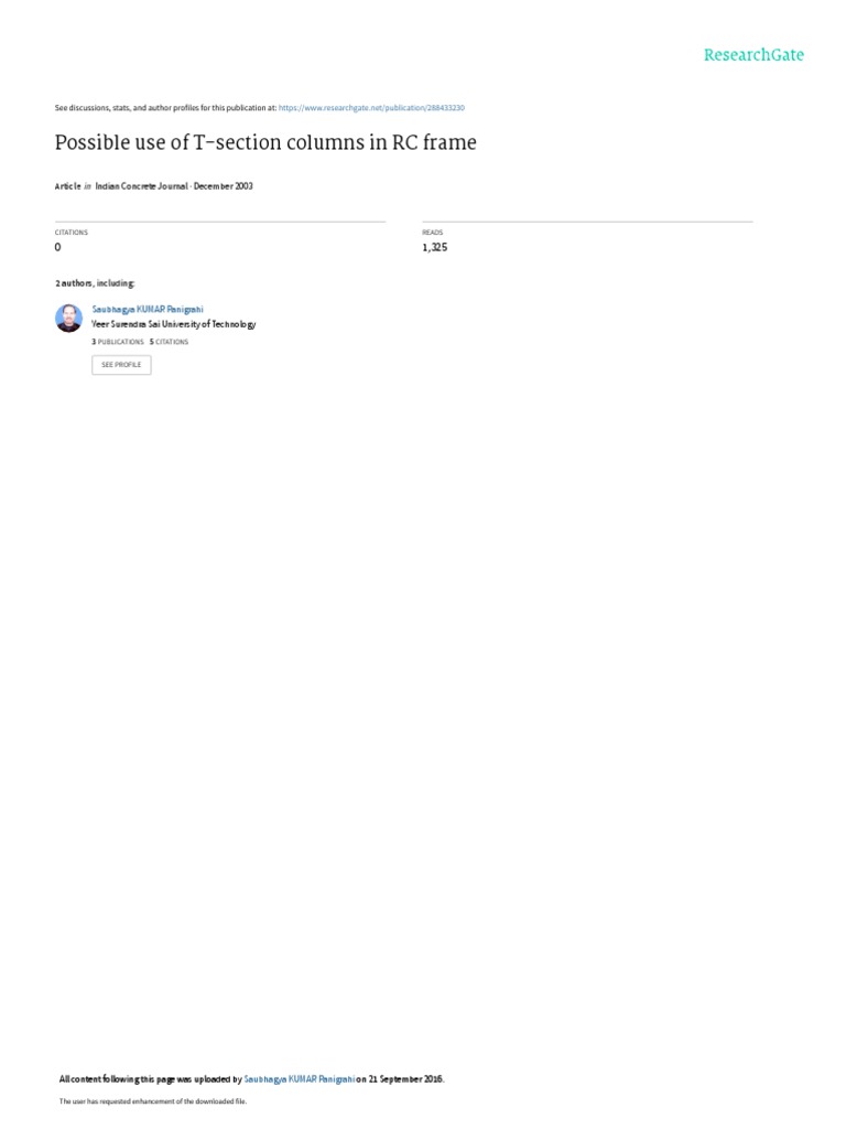 Possible Use of T-Section Columns in RC Frame: Indian Concrete Journal ...
