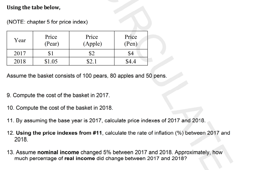Solved Using the tabe below, (NOTE: chapter 5 for price | Chegg.com