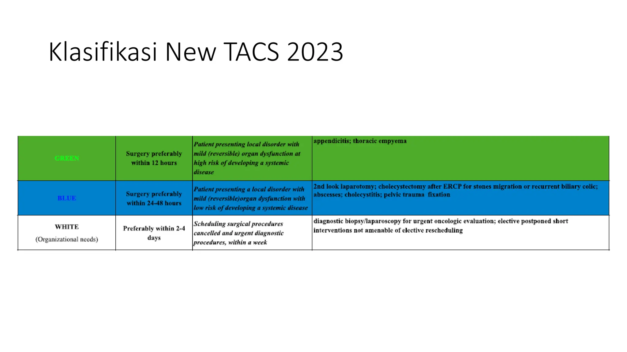 The new timing in acute care surgery (new TACS) classification: a WSES ...