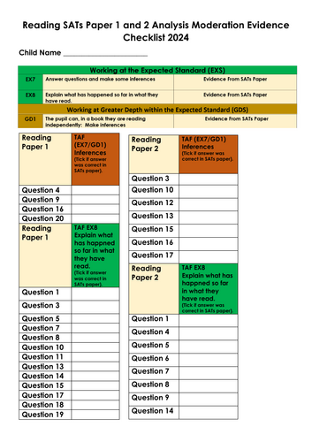 2024 Year 2 SATs Math and Reading Question Analysis against TAF ...
