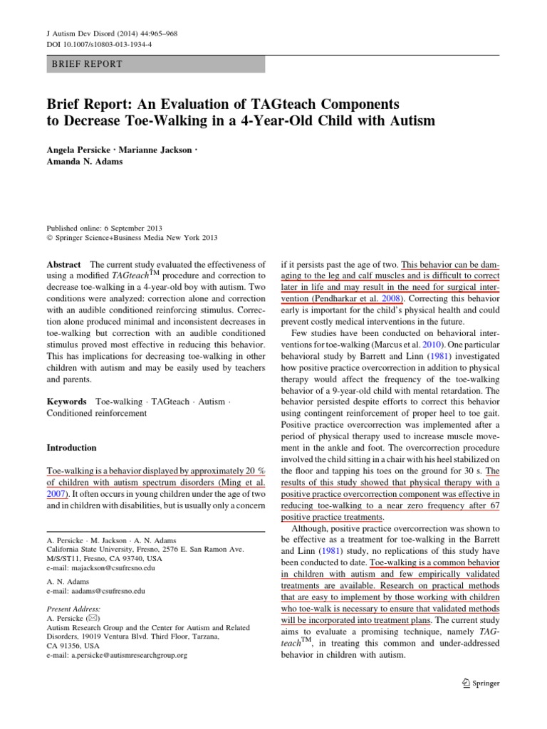 TAGteach Reduces Toe-Walking in Autism | PDF