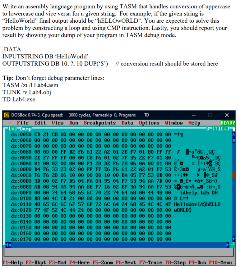 Solved Using TASM/TLINK, Create an assembly language program | Chegg.com