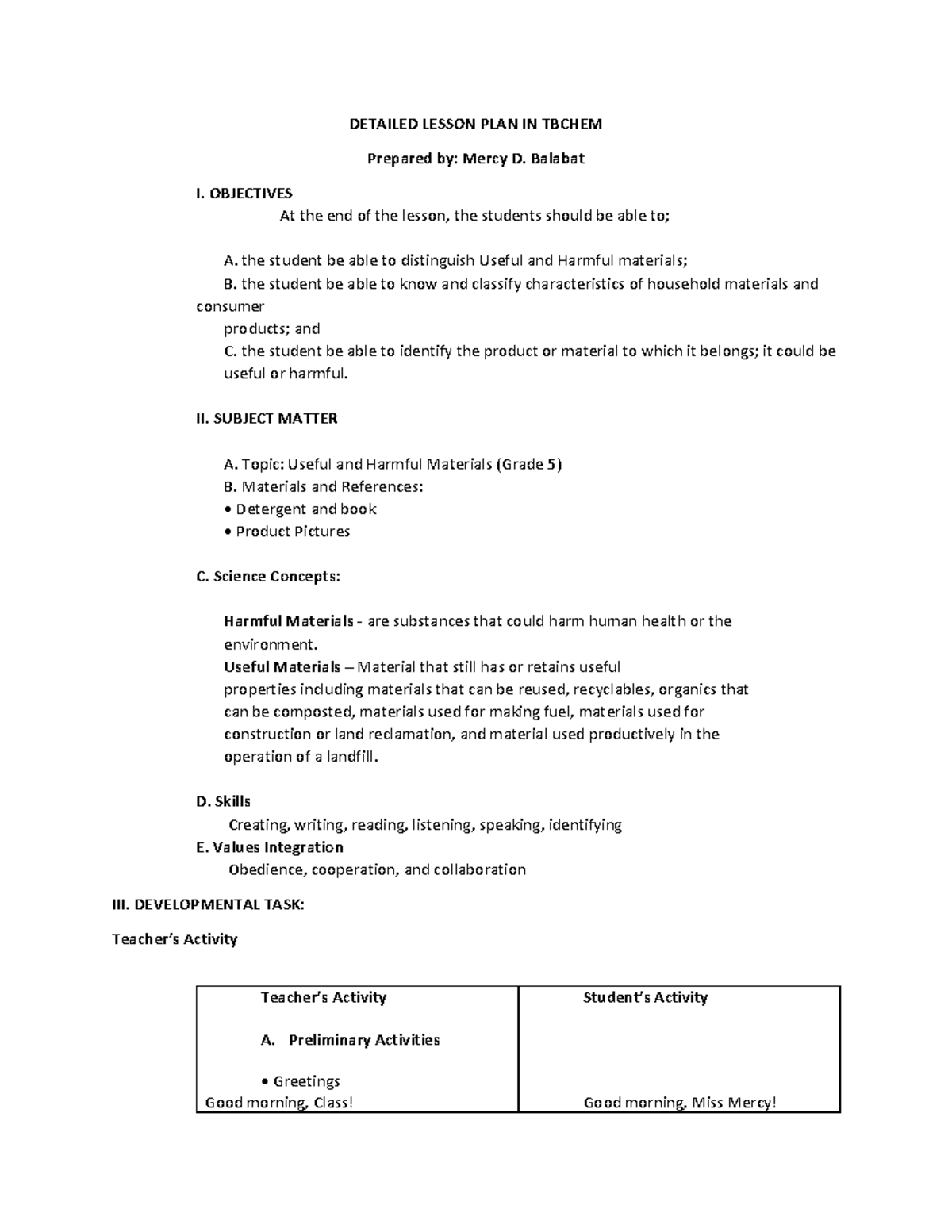 Lesson Plan Midterm Project Tbchem - DETAILED LESSON PLAN IN TBCHEM ...
