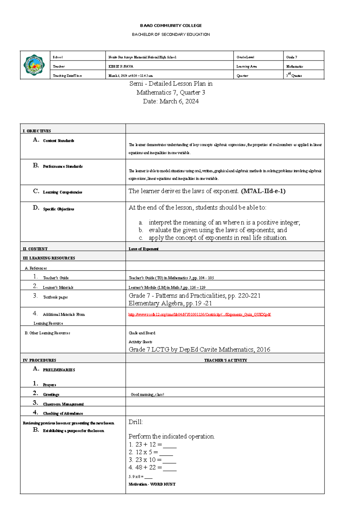 T1 - lesson plan - BAAO COMMUNITY COLLEGE BACHELOR OF SECONDARY ...